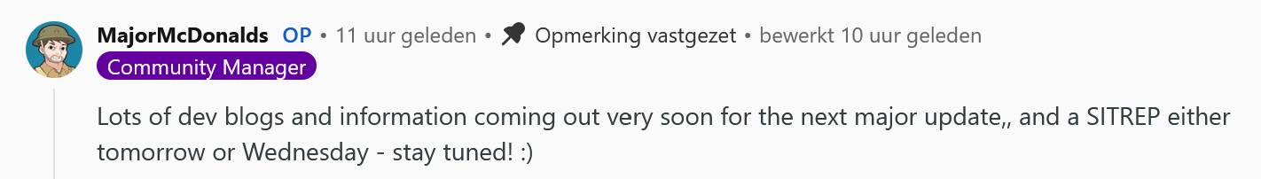 On Reddit he wrote that the sitrep will be there today or wednesday.