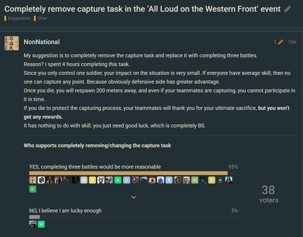 Just enable normal bp task and saboteur grind progression in WWI event. Stop wasting player time.