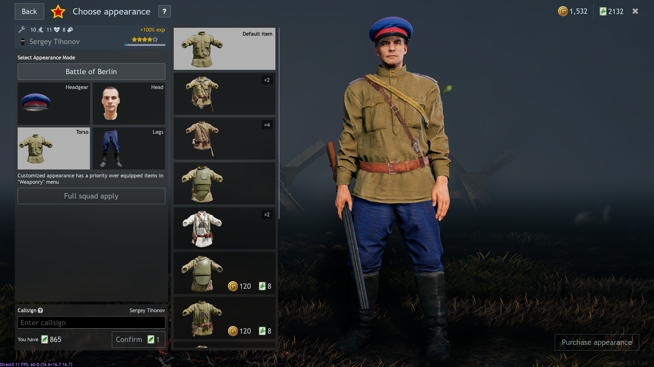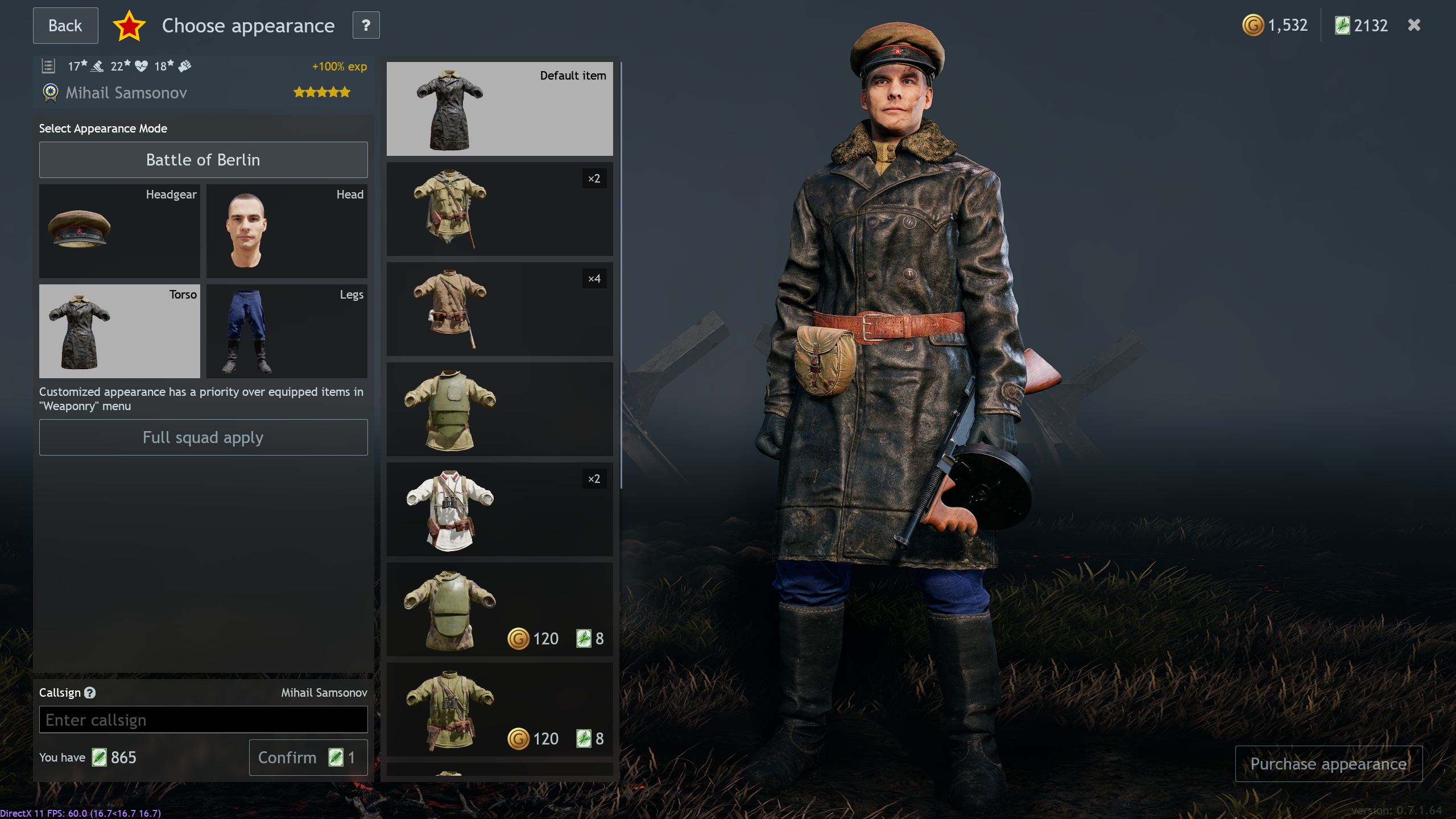 Currently this squad wears jackets and gloves in Berlin by default, a new summer option should be added to the customization pool along with the blue visor cap to all campaigns as the current default one is for artillery and tank units. The summer NKVD uniform already exists on legacy Berlin and Stalingrad mortarmen so there is no need to make anything new.