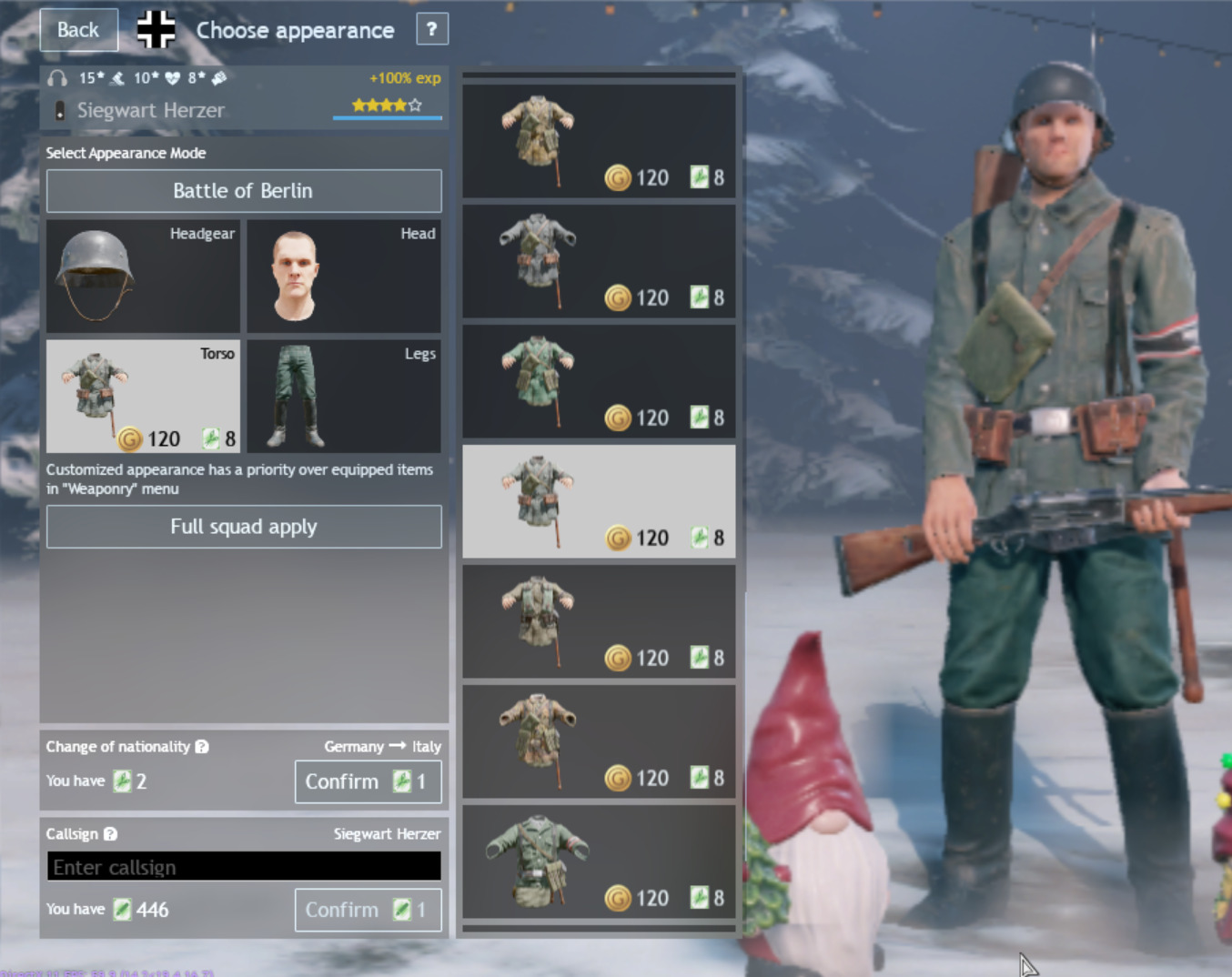 - Adjusted the default uniform and added additional customization options for the Gerät 03 (Germany, Premium), Kbsp wz.38M (Germany, Premium), KS 750 (Germany, Premium) and Horn StG (Germany, Event) squads in multiple campaigns.