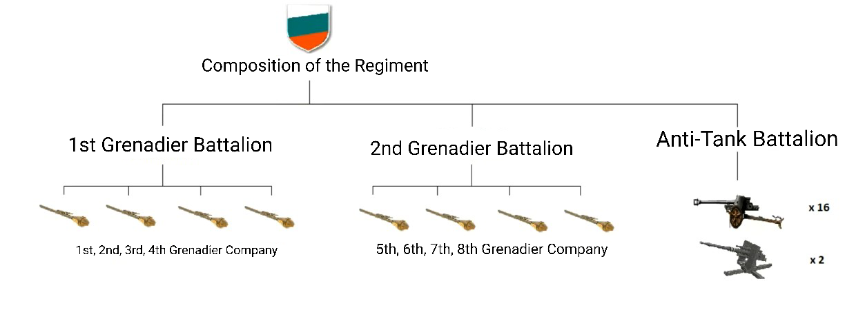The Waffen Grenadier Regiment of the SS (1st Bulgarian) was formed in late 1944 or early 1945 (probably late 1944) in Döllersheim in Austria,was composed of 25 officers, 56 non-commissioned officers, more than 500 soldiers ,150 students and 12 nurses under the command of General Ivan Rogosarov.
