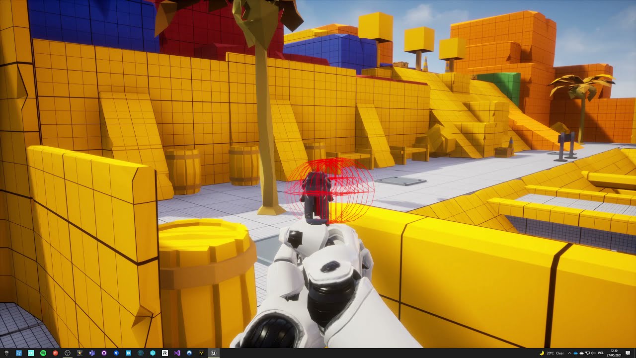 The end goal should be to have the entire weapon have a hitbox, i.e. we won’t see that black part of the weapon buried in the wall.
