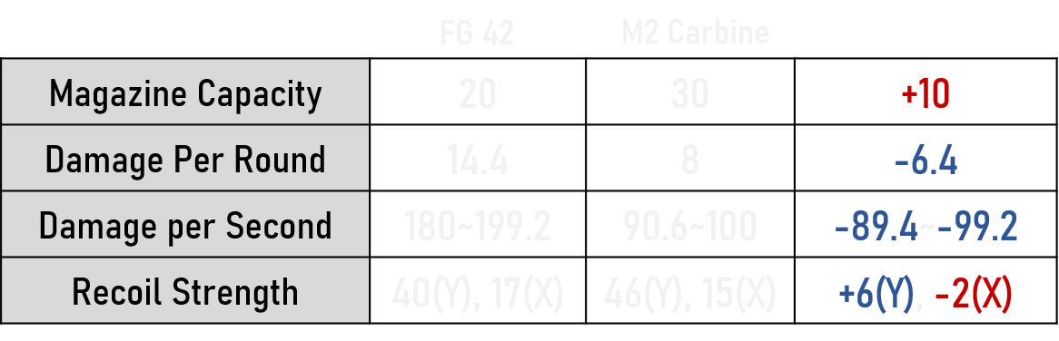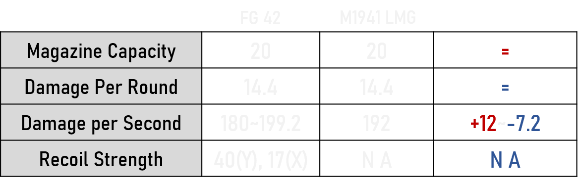 As shown on the Chart, M1941 LMG and FG42 have almost same stats to be compared.