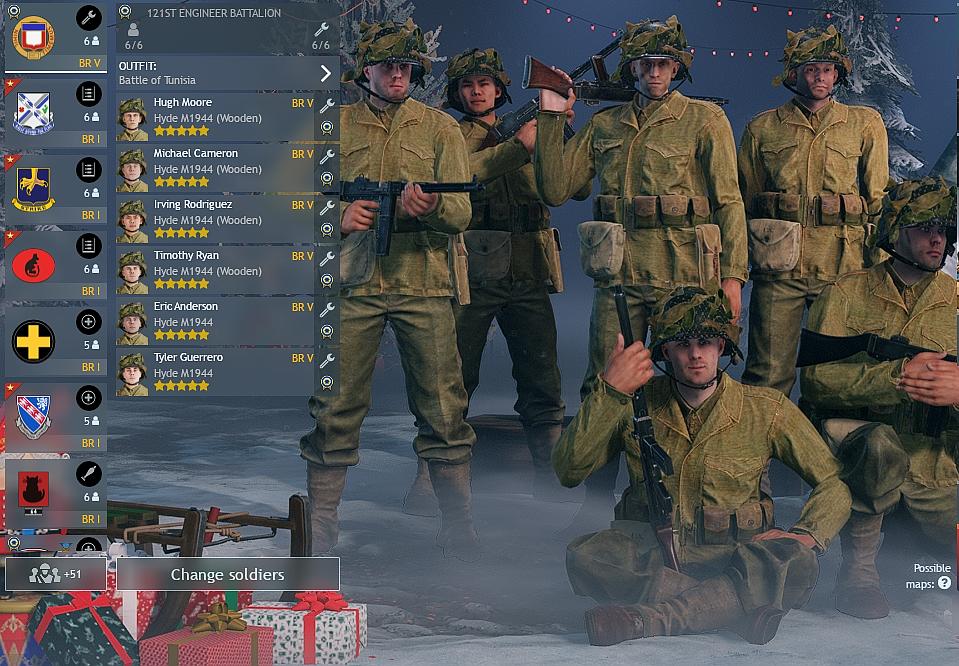 The one thing I truly love about these Engineer event squads is that “WE” can change the weapons. I have an event engineer squad from each faction, but the only squad I changed weapons for was Germany as I had five Mkb 35’s sitting in storage and no place to use them. I didn’t need them in BR5, so they got weapons changes and now reside in BR2.