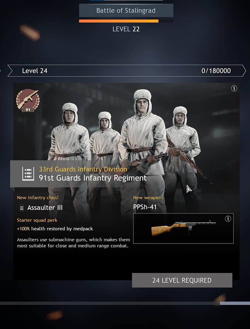 you know I thought I was one level away from unlocking ppsh just to realize that I am at level 22 and its level 24 I have already finished 22 but for some reason the game still thinks that I am there