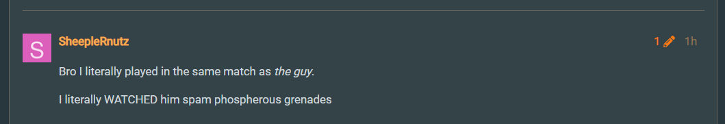 Oh it would be so fun to record someone spamming WP grenades and then sharing it to the forum (sadly, this isn’t available)