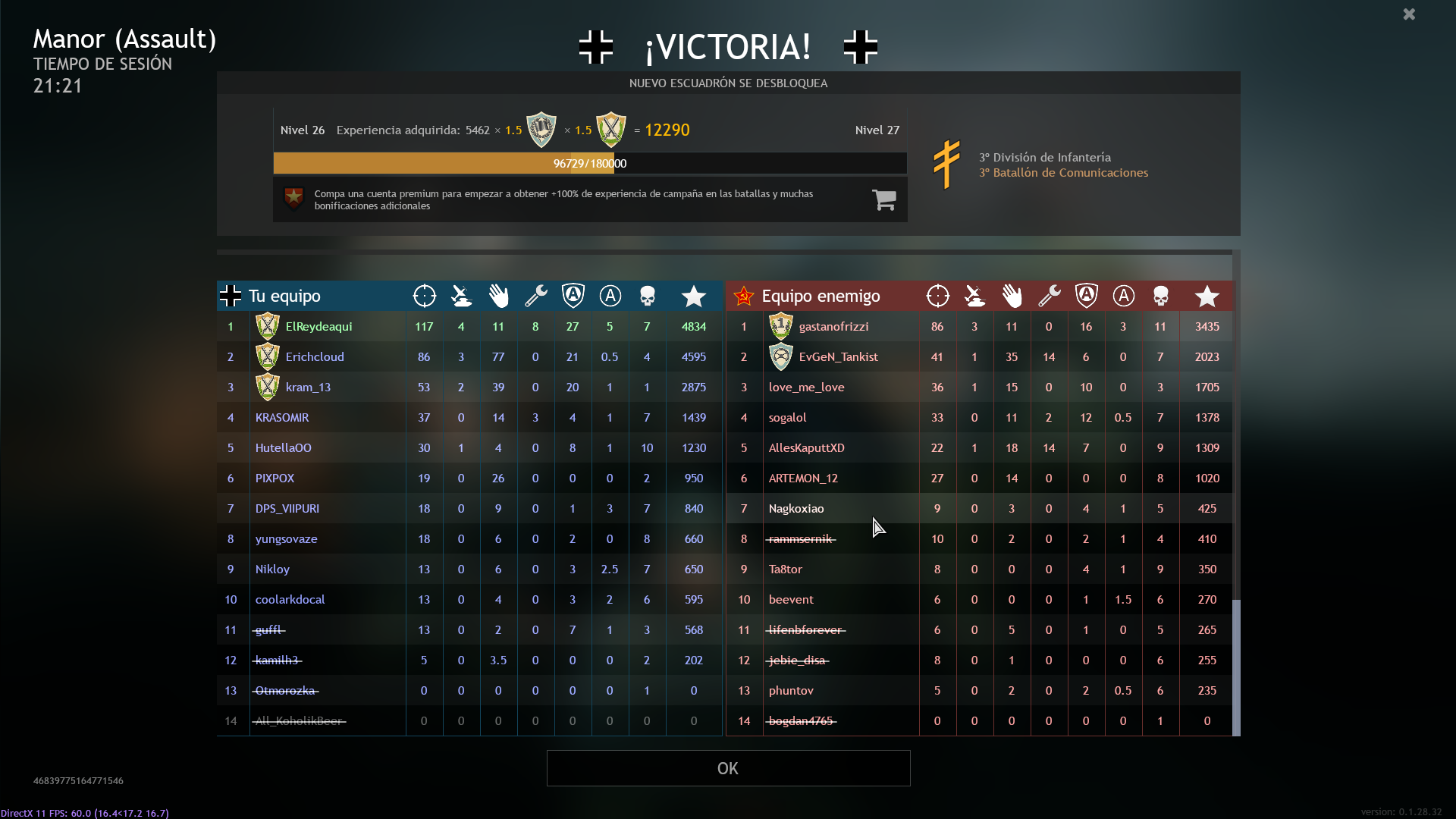 Well i ended my gfn cloud space for save things so the entire records of today is not saved this is embarassing i not cheked this morning how many space i have well rest assured next time we fougth i surely make video e screen for compare now gg for your win and yes german equipment is better no one say the opposite only you under this topic says the opposite because the nerf of lmg so bye