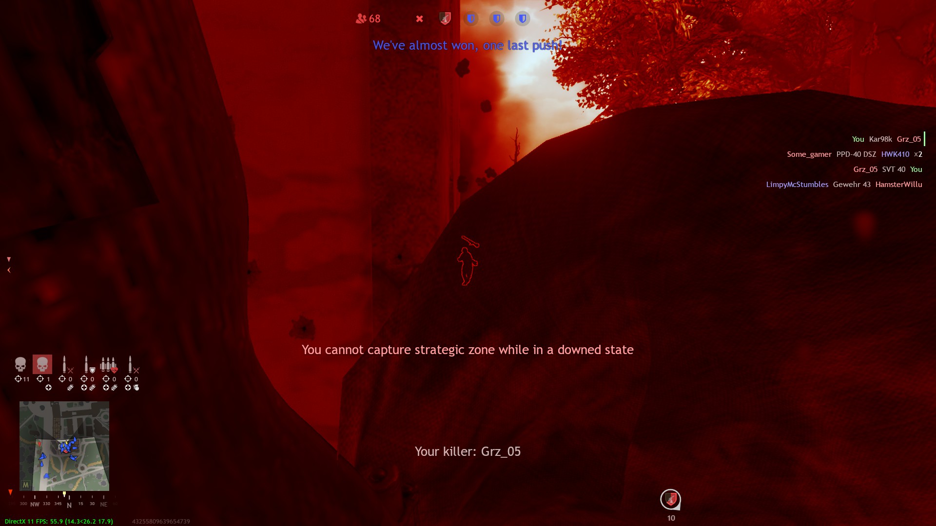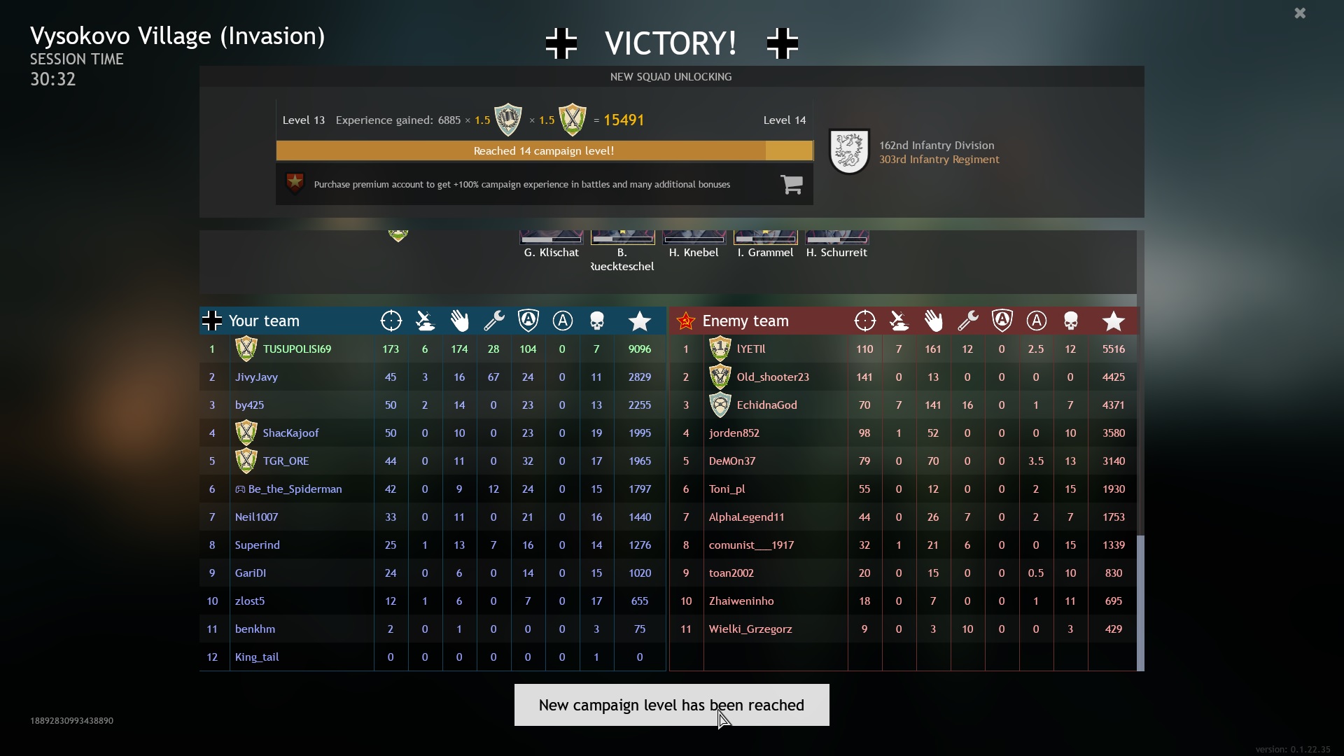 oh also this was from august 9th which was 9 days before LMG nerf and i didn’t use it as an assault rifle, we won and i was in second place because of rally points and my squads are still mostly equipped with bolt actions hell i even topped scored with squads mostly equipped with fucking american carbines with 4.5 caps on an invasion map