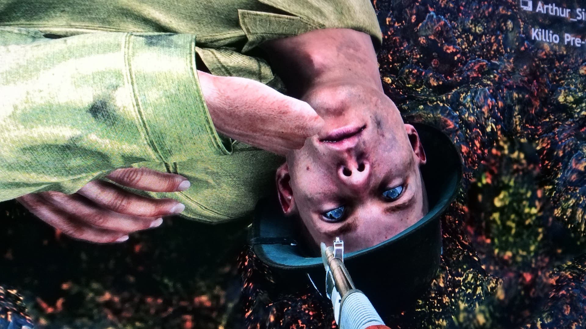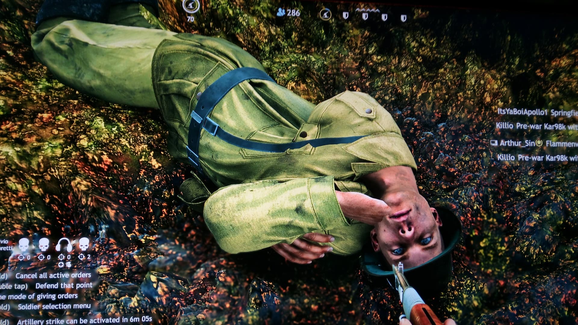 Here I was running across the battlefield, when I came across this poor soul staring up at me.