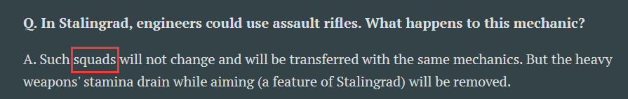 Currenty Stalingrad engineers can use assault rifles and SMG:s unlike engineer squads in other campaigns. Have the devs mentioned if they will be able to do this post-merge?